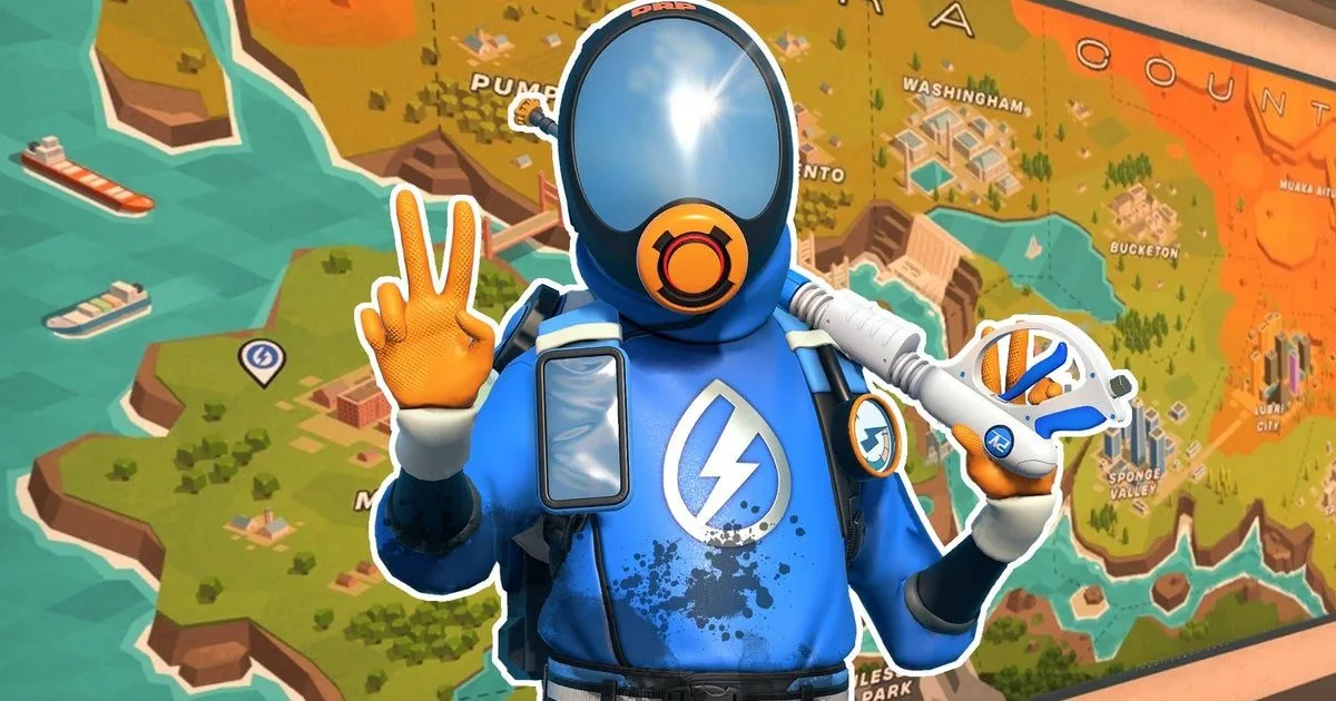 Claro, nada disso é novidade se você passou algum tempo com o PowerWash Simulator original, e é justo dizer que sua sequência evolui a fórmula apenas em incrementos mais suaves. PowerWash Simulator 2 é basicamente um jogo de refinamento e expansão modestos, com sua adição mais óbvia sendo a nova área de QG semelhante a um hub onde você pode passear e decorar com móveis desbloqueáveis (após uma limpeza profunda, é claro) entre os trabalhos. Claro, é essencialmente apenas uma interface de menu mais sofisticada, mas há definitivamente um apelo em ver suas conquistas apresentadas de uma forma mais tangível. Lembranças de suas aventuras aparecem nas prateleiras do seu escritório; recortes de jornais dão corpo à narrativa cada vez mais absurda em seu quadro de cortiça, e o mapa gigantesco de Caldera Country, onde você conseguirá novos empregos, adiciona outra camada à encantadora construção de mundo da série, dando a tudo uma maior sensação de coesão. Portanto, embora não seja uma adição essencial, ajuda a apresentar uma face consideravelmente mais polida em comparação com o emaranhado de menus um pouco descuidado do primeiro jogo, e é um bom ponto focal para a socialização entre empregos no modo cooperativo, que agora suporta tela dividida para dois jogadores ou quatro jogadores online.