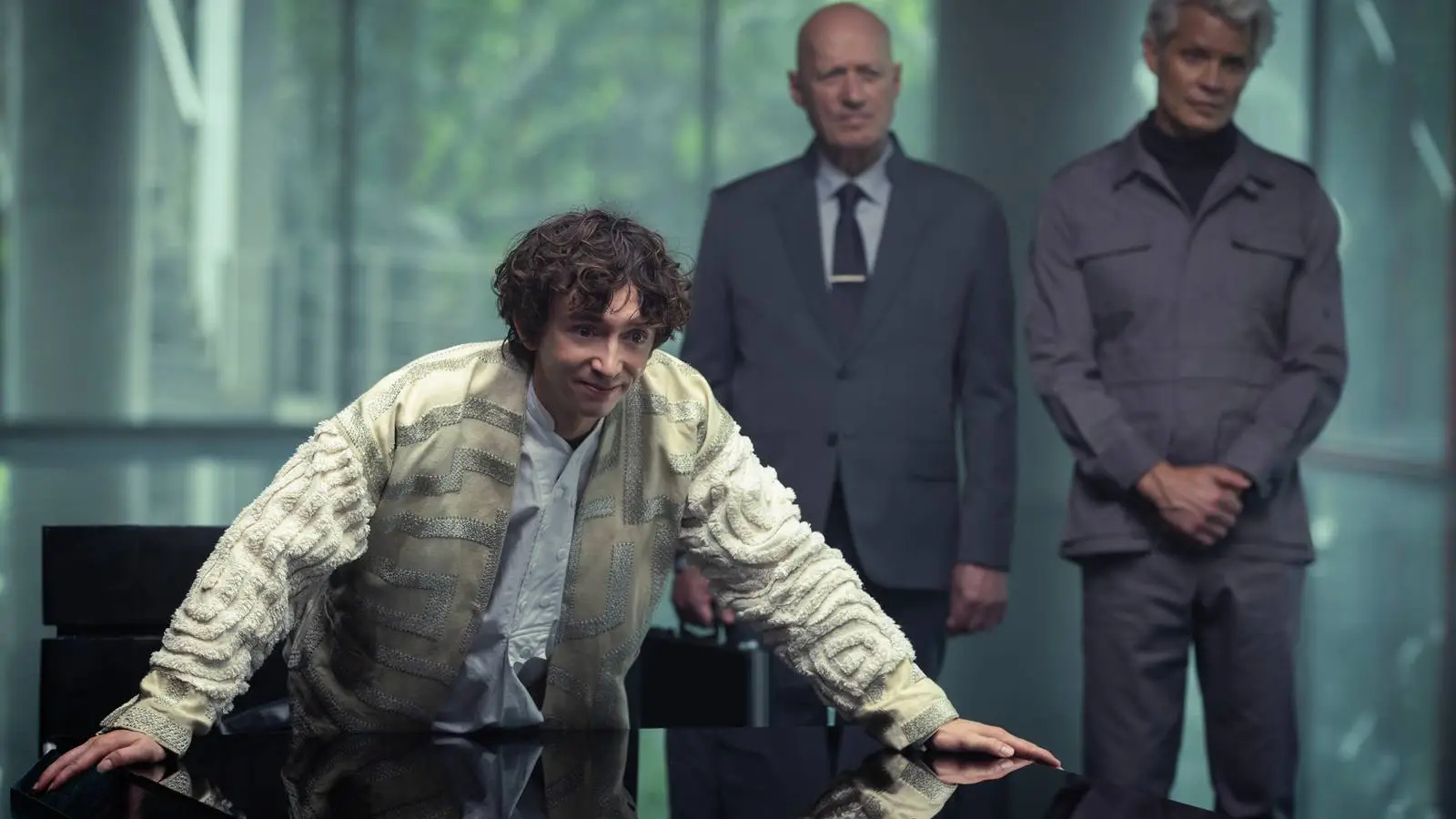 “Obviamente, estou ciente dos paralelos do que está acontecendo no mundo agora e do que está acontecendo com nossa tecnologia e com pessoas que têm posições de poder proeminentes”, diz Blenkin. “Mas Noah me salvou de ter que pensar muito nisso, porque ele me deu essa referência louca de personagem.”
