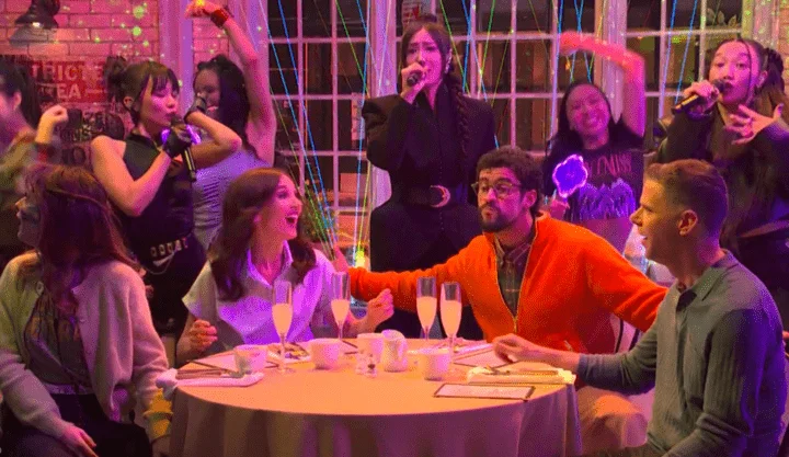 As vozes por trás de Huntr/X – Ejae, Rei Ami e Audrey Nuna – aparecem no esboço quando Thomas começa a sonhar acordado. “Se ao menos houvesse três lindas garotas coreanas que poderiam protegê-lo”, diz ele, imaginando o trio realizando seu mega-hit, “dourado”.