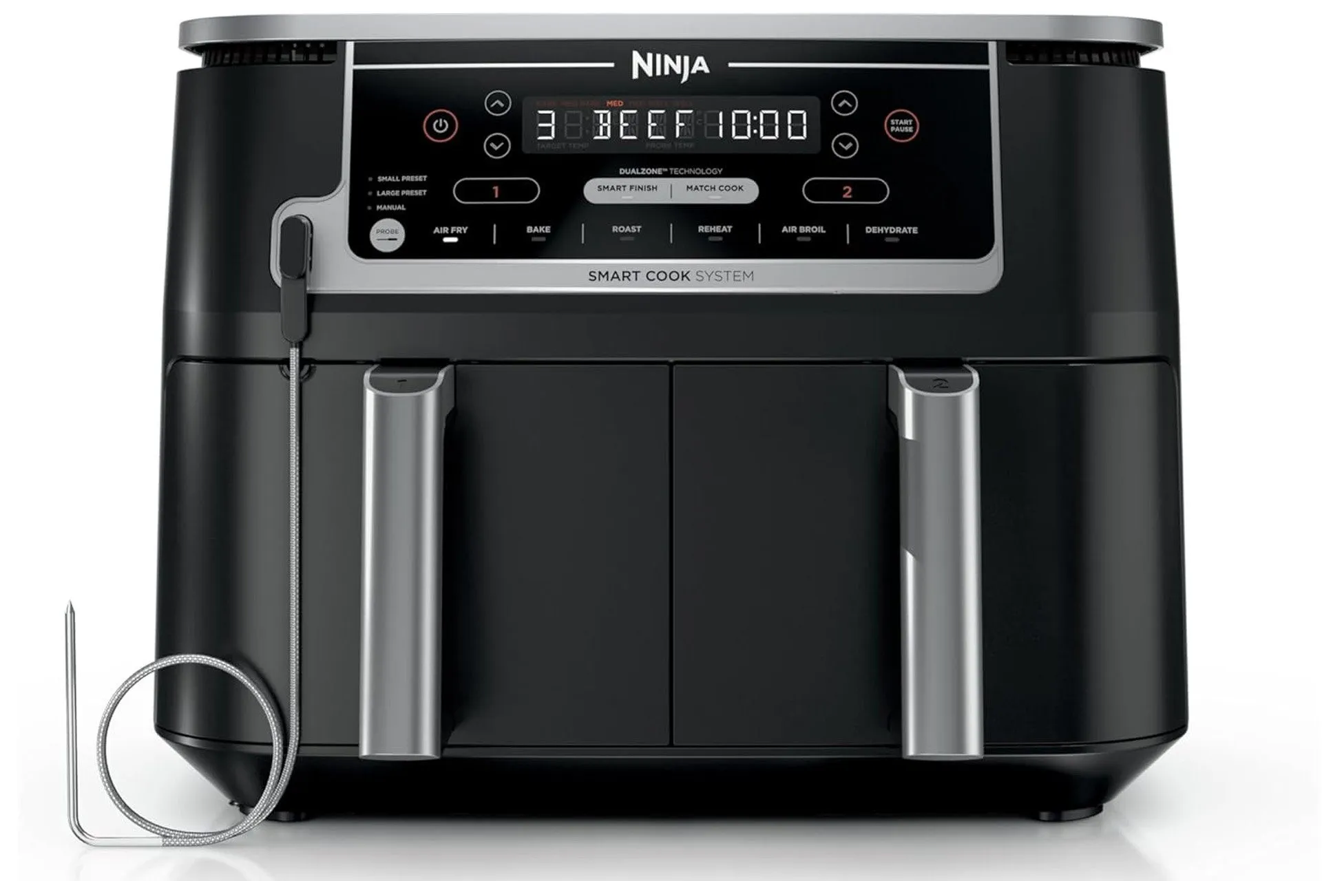 Cozinhar pode parecer cansativo se você nunca domina o tempo, as temperaturas ou sabe quando a carne está realmente pronta. O ninja DZ550 Comida resolve essas frustrações diárias na cozinha, eliminando todas as suposições na preparação das refeições por meio de seu termômetro integrado que informa exatamente quando a comida atinge o nível de cozimento perfeito.