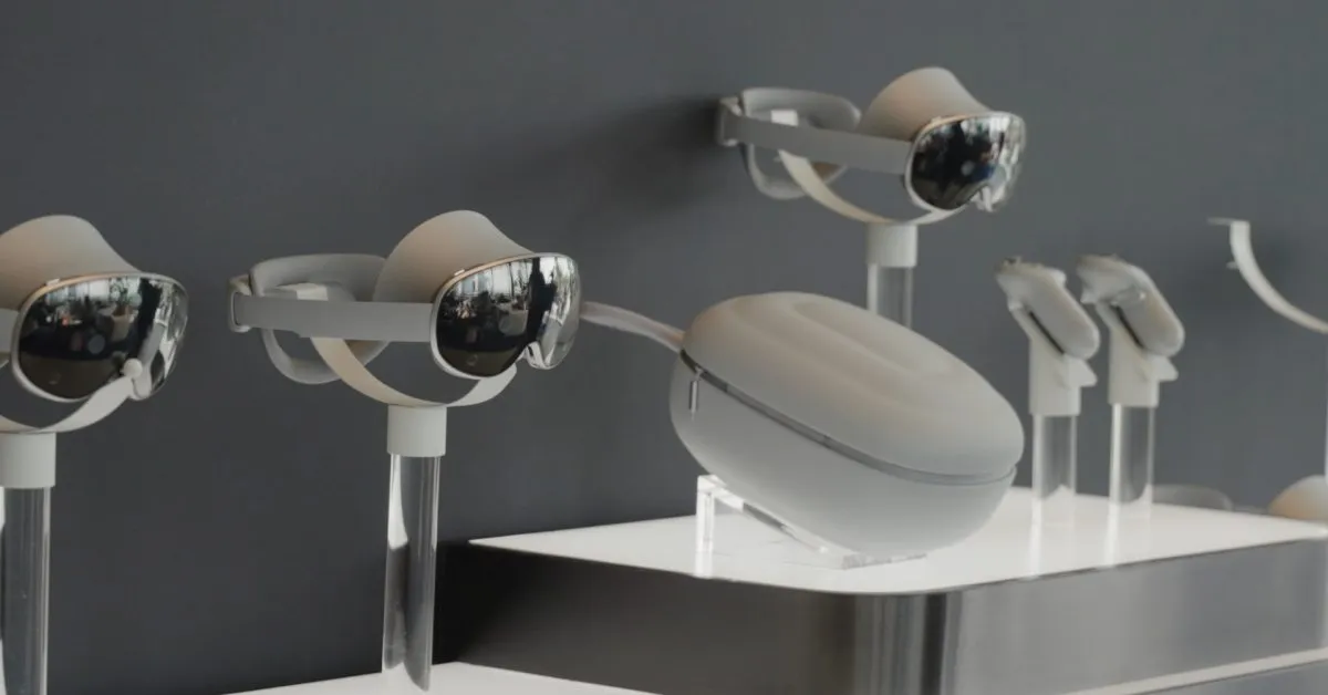 Graças à construção principalmente de plástico, ele pesa 545 gramas antes de considerar o protetor de luz opcional que oferece uma experiência mais envolvente, enquanto a bateria externa pesa 302 gramas (o ponto de conexão fica no lado esquerdo). Para efeito de comparação, o Vision Pro de alumínio pesa 750–800 gramas (e a bateria pesa 353 gramas), enquanto o Meta Quest 3 pesa 515 gramas.