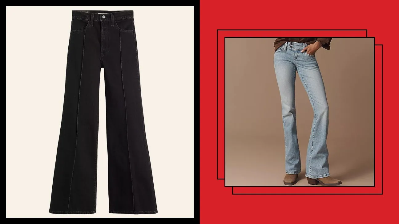 Os jeans mais cobiçados estão assumindo uma vibração de outono frio, com cortes de perna larga ou de um fundo de sino sendo as silhuetas para usar agora.
