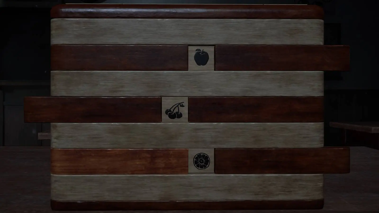 Deslize os painéis de madeira para revelar quaisquer frutas que possam ser descritas como doces ou azedas, depois vire a caixa para fazer a mesma coisa do outro lado. Os resultados devem ser os seguintes, com caixas pretas indicando painéis que permanecem fechados: